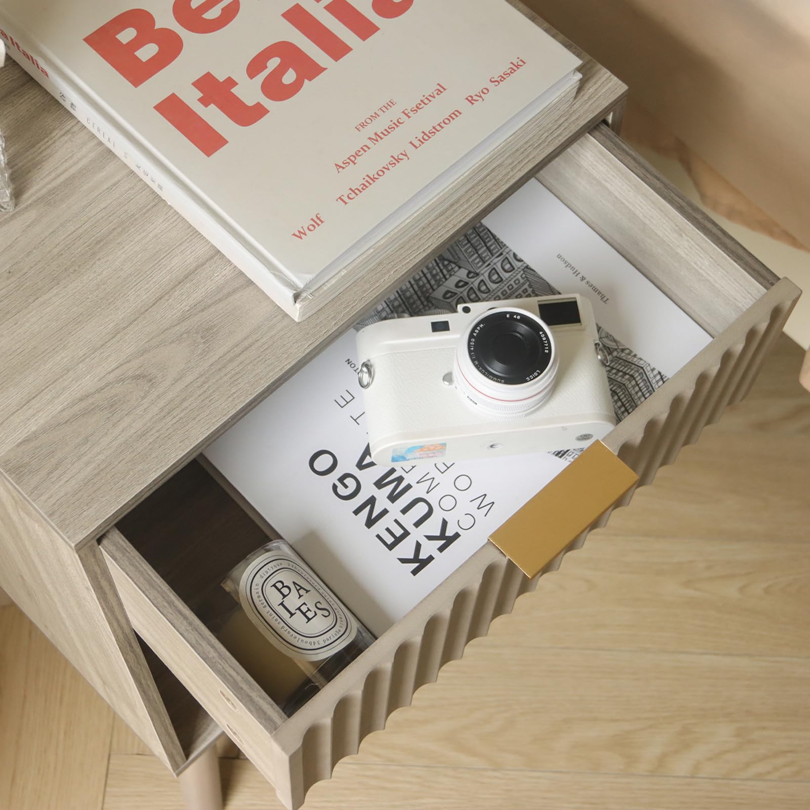 • Mid Century Modern Nightstand, Wood Bedside Table with Drawer and Opening Storage5
